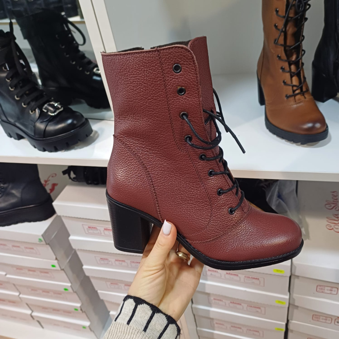 Botine piele naturala lungi cu șiret